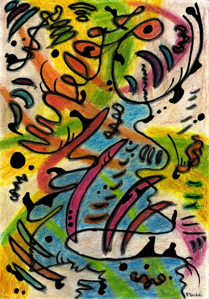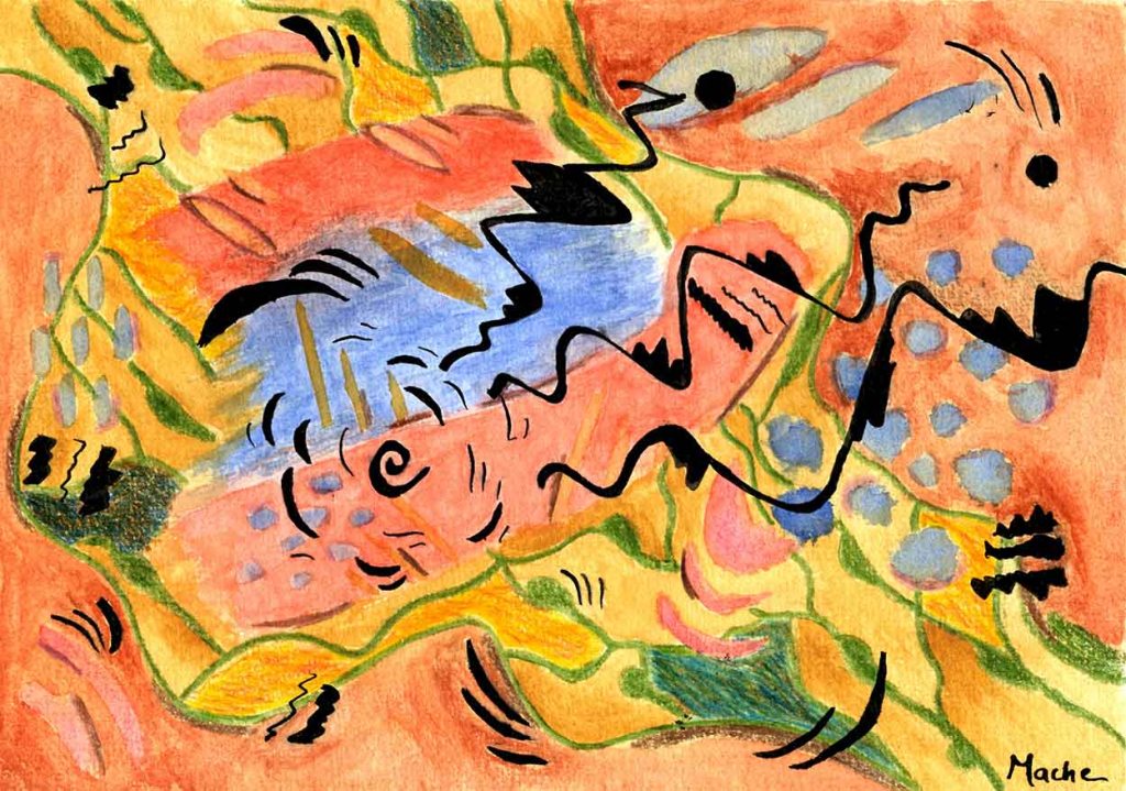 Depuis toujours fasciné par Kandinsky et ses formes géométriques abstraites et colorées, Mache cherche à reproduire ce “saisissement“ qui le surprend lorsqu’il admire ses œuvres grâce au jeu des teintes, à l’équilibre des formes et à la minutie du détail.